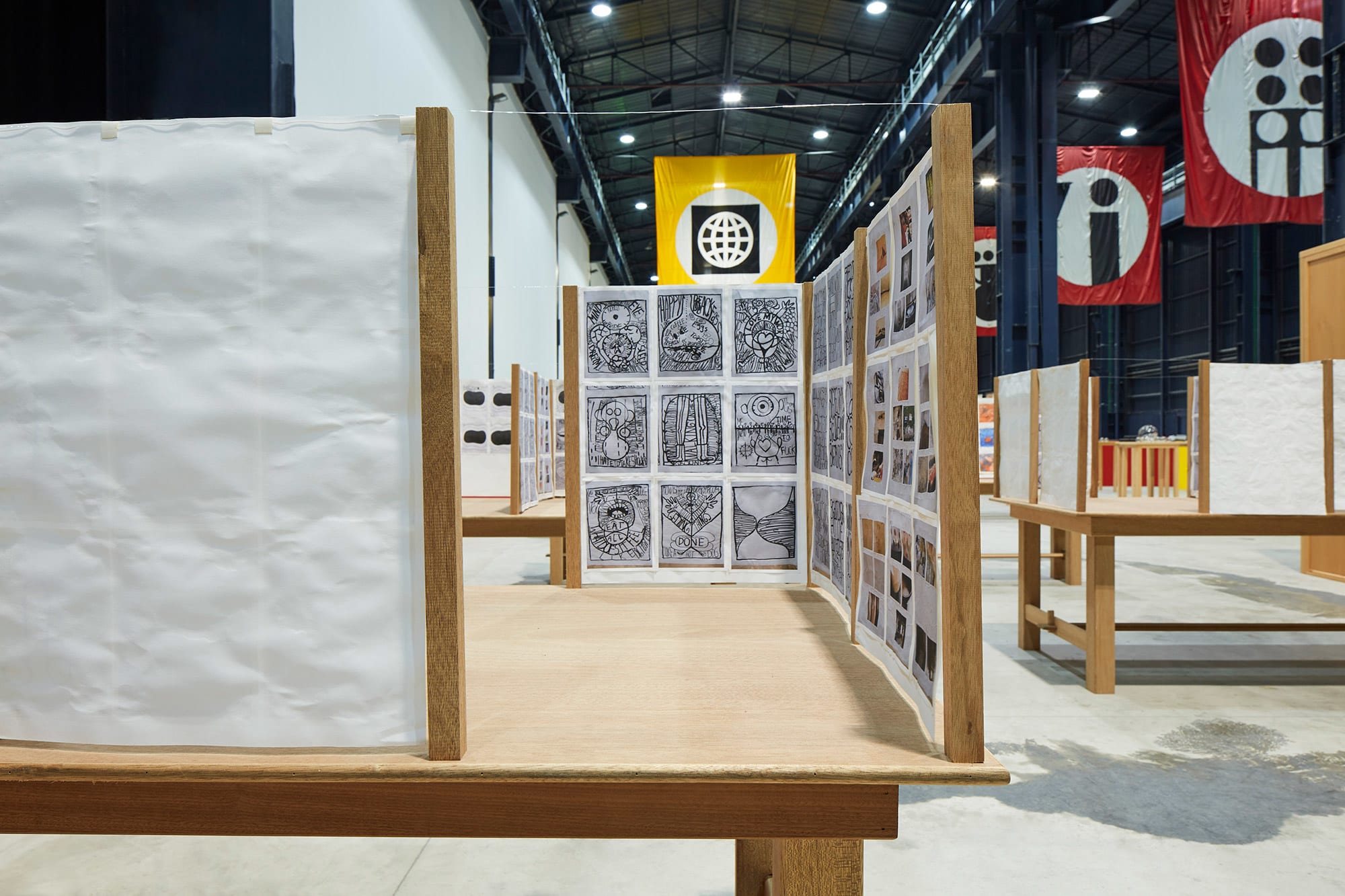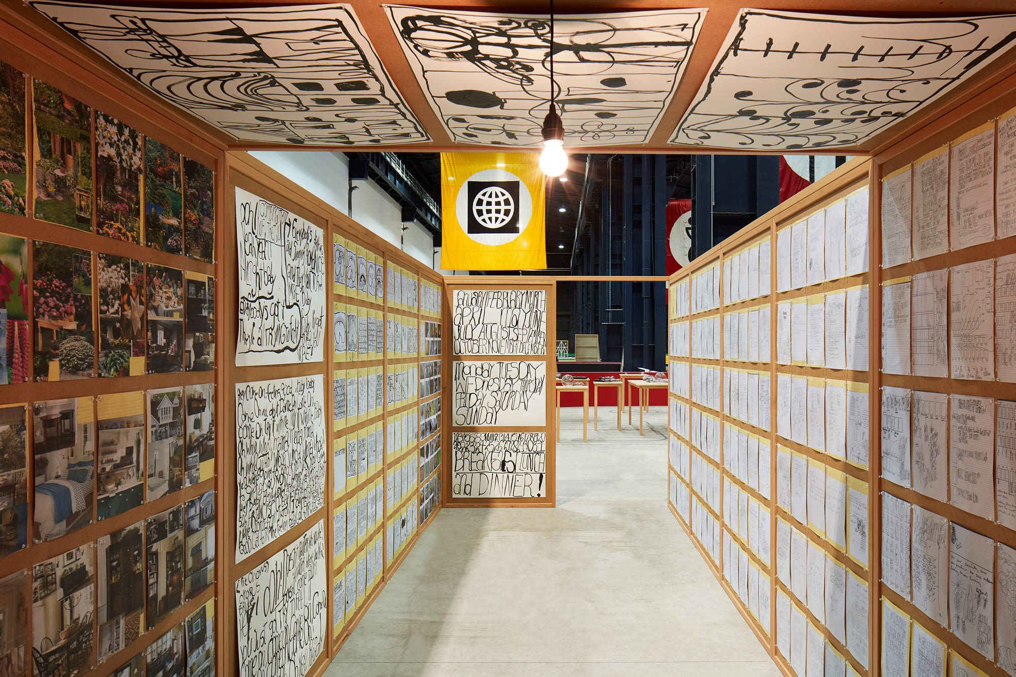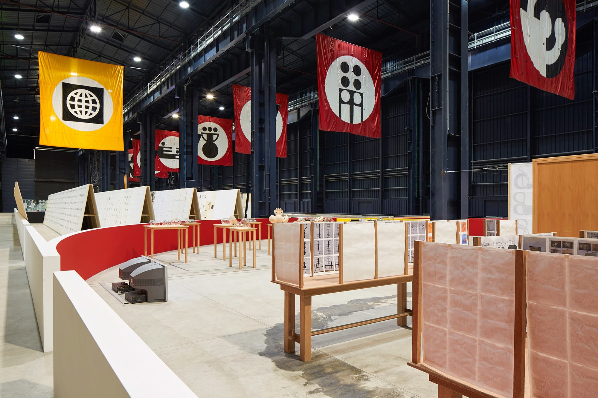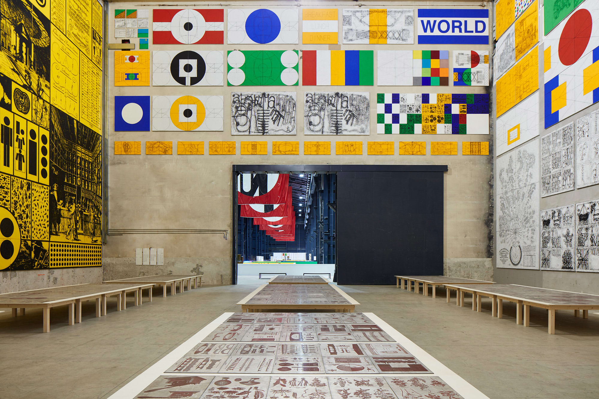 The Feeling of Things has been the most extensive exhibition in Italy by Matt Mullican (born in 1951 in Santa Monica, California) and his major retrospective ever. For Pirelli HangarBicocca the artist has designed a massive sculptural structure that takes its shape from his most iconic five-color-cosmologies, occupying nearly the entire 5,000 square meter exhibition space. Representing an extremely rich selection of Mullican’s seminal works from the 1970s as well as more recent times, they include paintings, rubbings, banners, glass sculptures, works on paper, videos, lightboxes, floor pieces and bigger installations and explore the most hermetic aspects of human life.