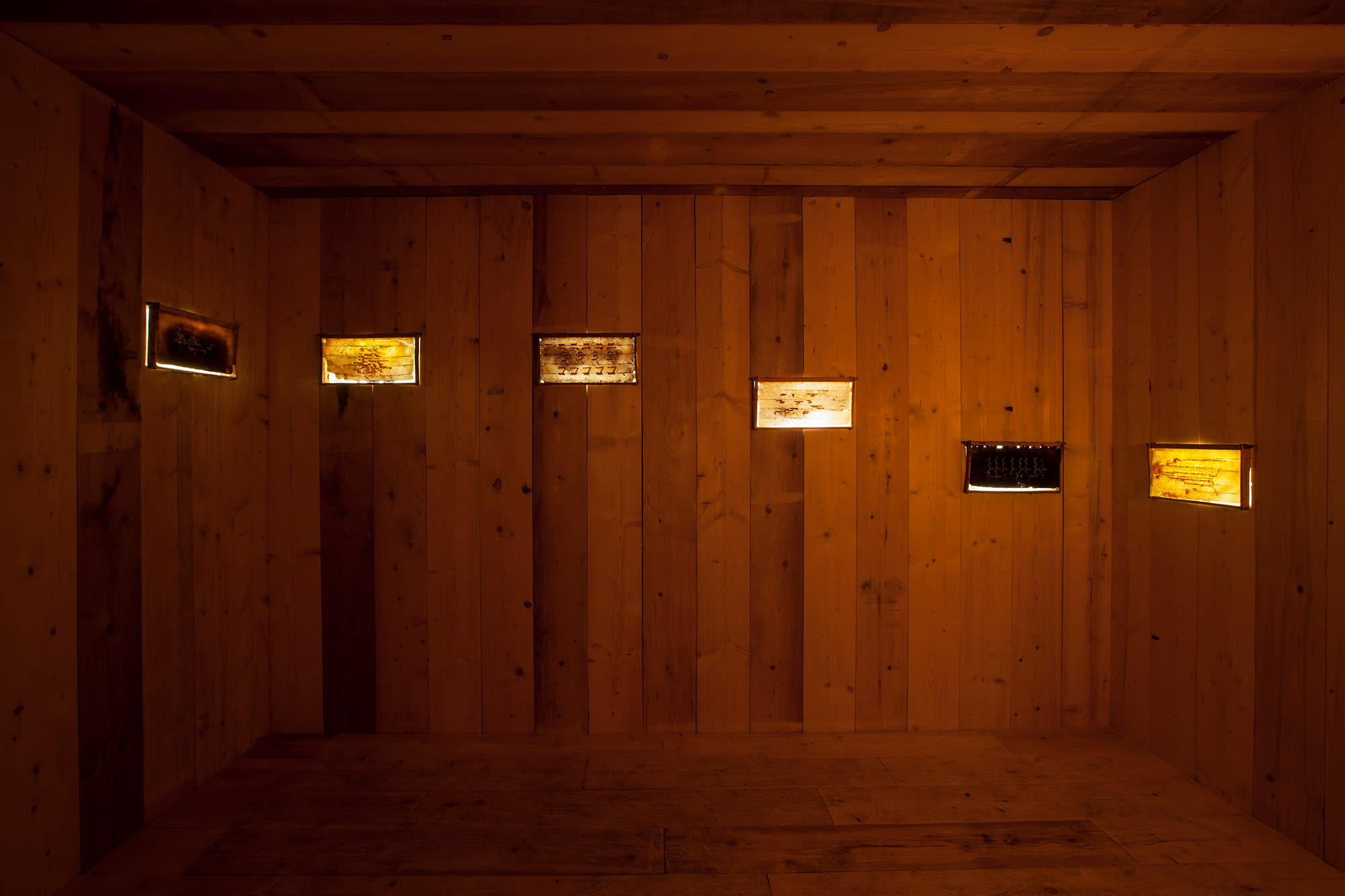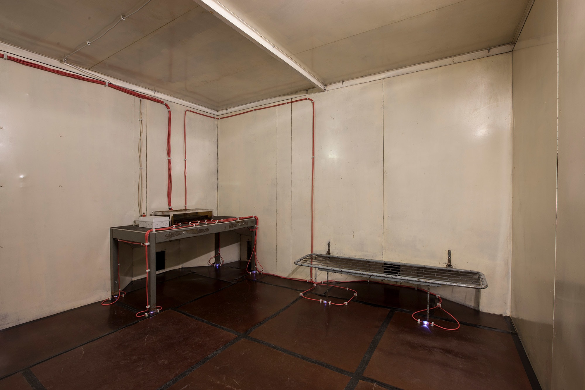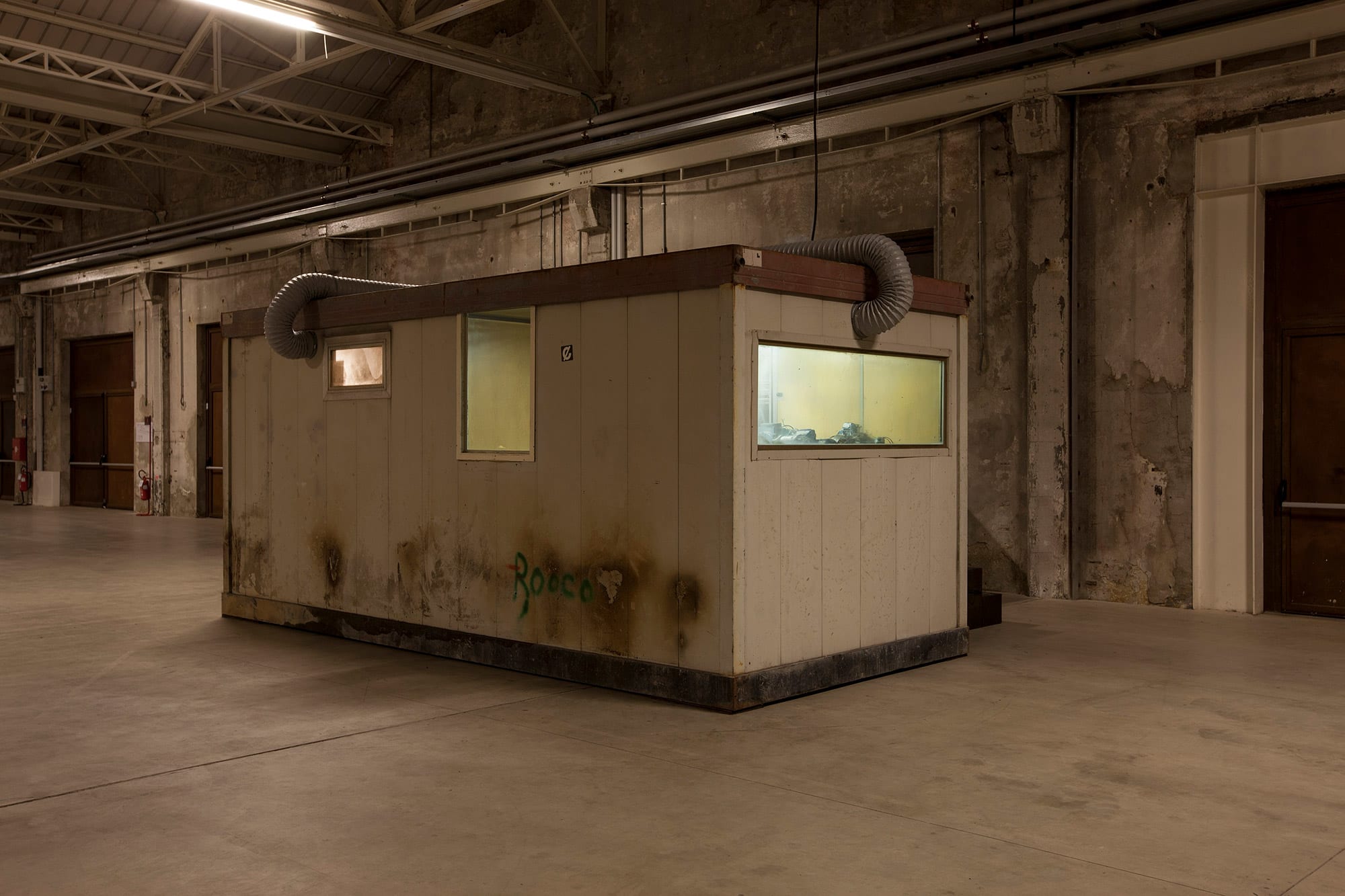 Sound appears in this exhibition right from the title, which is a sort of musical tongue-twister, combining a number of Greek words. These are intentionally juxtaposed by the artist without forming any meaning, precisely in order to prevent any pre-established interpretation. Sound is the unifying element that brings together Micol Assaël’s five works in the Shed at HangarBicocca. Visitors are invited to empathically attune to five settings, which are almost like micro-housing units, and to discover their hidden details: in this sense, the physical and, to an even greater degree, mental dimension of listening is a key aspect of the artist’s research.
